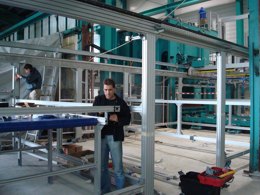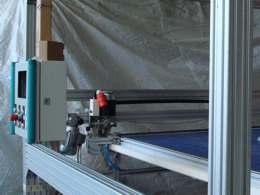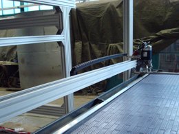 SPS controlled lenght and cross cutter - combined with a spreading machine, working width 3 m.